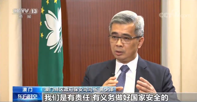 澳門特區(qū)政府保安司司長 黃少澤: 我們作為中華人民共和國的一個特別行政區(qū),我們是有責(zé)任有義務(wù)做好國家安全的。咱們國家的國家安全法里頭講得很清楚,包括港澳臺同胞在內(nèi)的所有中國公民都有責(zé)任維護(hù)咱們國家的安全。