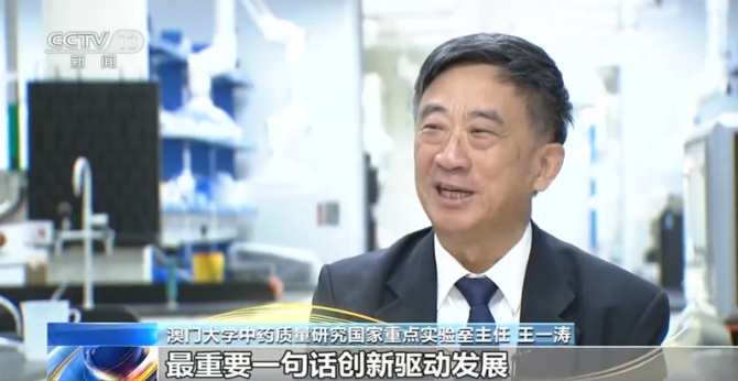 澳門大學(xué)中藥質(zhì)量研究國家重點(diǎn)實(shí)驗(yàn)室主任 王一濤:習(xí)主席給我們的鼓勵激勵,最重要一句話創(chuàng)新驅(qū)動發(fā)展,我們建立起了一系列的關(guān)鍵核心的前沿技術(shù),我們用“一國兩制”的優(yōu)勢為產(chǎn)業(yè)發(fā)展和產(chǎn)業(yè)創(chuàng)新奠定了基礎(chǔ)。