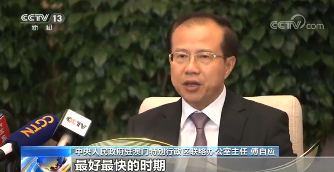中央人民政府駐澳門特別行政區(qū)聯(lián)絡(luò)辦公室主任 傅自應(yīng):澳門回歸以來的20年是澳門在歷史上發(fā)展最好最快的時期,澳門社會各界同胞積極投身大灣區(qū)建設(shè),推進(jìn)澳門經(jīng)濟(jì)社會繁榮穩(wěn)定。