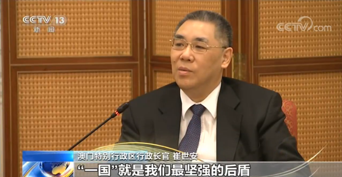 澳門特別行政區(qū)行政長官 崔世安:“一國兩制”,“一國”就是我們最堅強(qiáng)的后盾。我們盡我們最大努力去融入大灣區(qū)的發(fā)展,是國家給了我們一個很寶貴的機(jī)會,突破了澳門很多短板。我衷心祝愿澳門特別行政區(qū)繁榮穩(wěn)定,明天會更好。