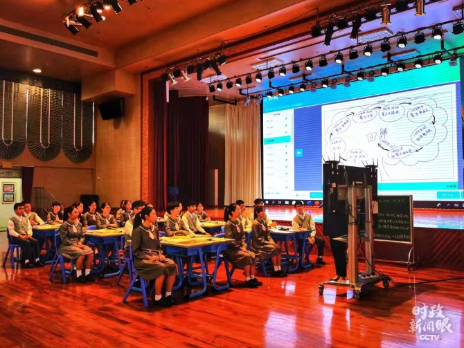 △這堂中國(guó)歷史公開課在學(xué)校五層禮堂舉行。(央視記者關(guān)舟拍攝)