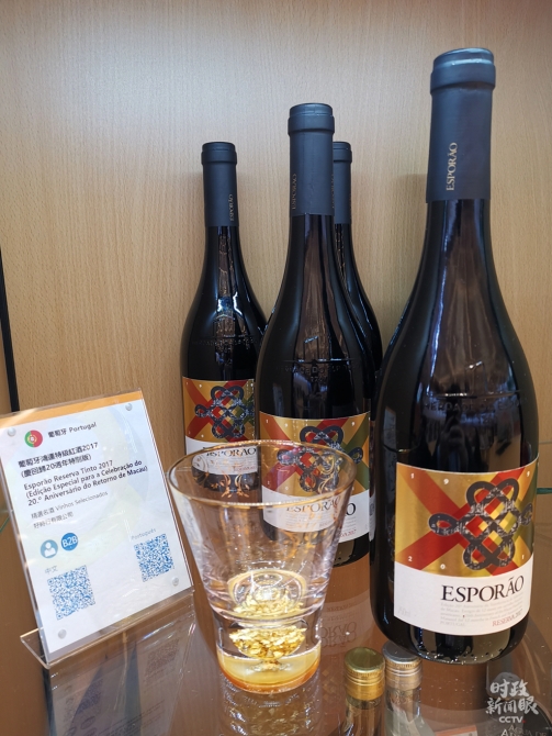 △這是一款慶祝澳門回歸祖國(guó)20周年的葡萄牙紅酒。(央視記者魏建拍攝)