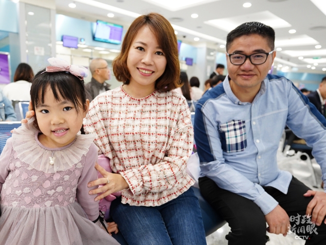 △這是澳門年輕夫婦王國(guó)輝、呂琦穎當(dāng)天在給5歲的女兒辦理身份證。(國(guó)廣記者李晉拍攝)