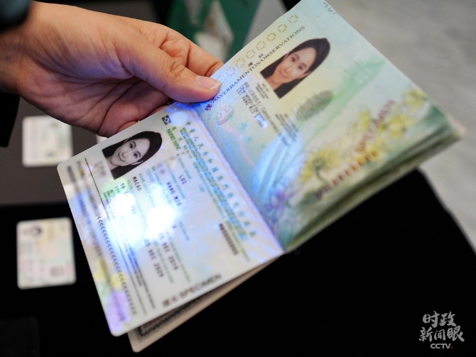 △這是澳門居民的新版護(hù)照樣本,采用最新防偽技術(shù)。(國(guó)廣記者李晉拍攝)