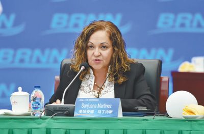 圖為2019年4月23日,圣胡安娜·馬丁內(nèi)斯在“一帶一路”新聞合作聯(lián)盟首屆理事會(huì)議開幕式上發(fā)言。 |