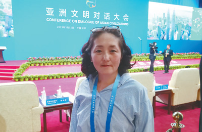 圖為2019年5月15日,孟和圖拉在北京參加亞洲文明對(duì)話大會(huì)。 |