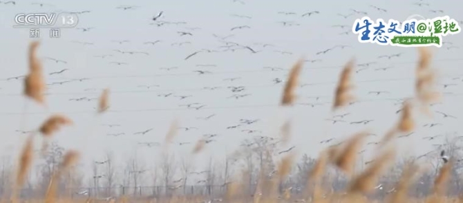 隨著天氣轉(zhuǎn)冷,大量候鳥南遷。近日,近600只東方白鸛飛抵天津七里海濕地。