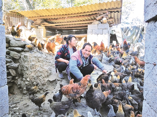 “自從2年前開始養(yǎng)雞以來,我家的生活改善了許多。今年雞價好,養(yǎng)雞效益不錯,明年還將擴大養(yǎng)殖規(guī)模,爭取有更大收益?!庇颀埧h黎明鄉(xiāng)茨科塘上村殘障養(yǎng)殖戶張文國、李燕芬夫妻高興地說。目前他家的雞有1400多只,僅今年9月到目前,大雞小雞賣了600多只。(麗江日報 記者王桂祥)