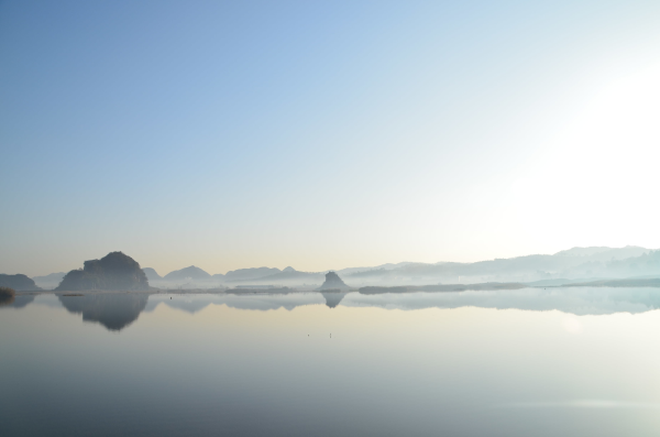 漫步在林間小道,只見湖上孤峰林立,輕舟劃過湖面,候鳥悠閑飛過,冬天的普者黑,少了夏日的熱鬧與喧囂,多了一分閑適與靜謐。