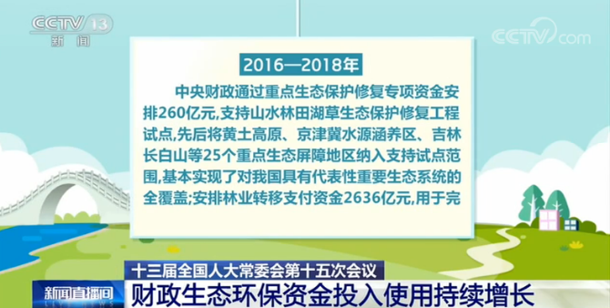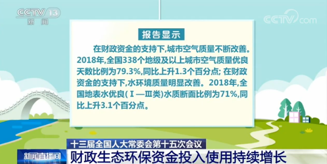 財政部部長劉昆在報告中指出,在財政收支矛盾突出的形勢下,在壓縮一般性支出的同時,堅持把生態(tài)環(huán)保投入放在重要位置,優(yōu)先保障,為打好污染防治攻堅戰(zhàn)提供了有力支撐。