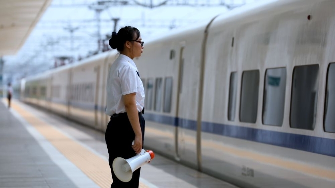 ↑劉星憑準備登上列車工作。(視頻截圖)