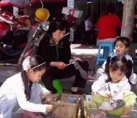 三個(gè)孩子也學(xué)起奶奶的模樣