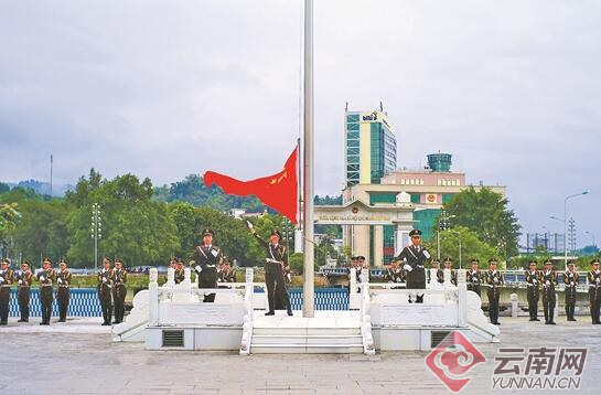 10月1日上午,河口邊防檢查站在河口口岸舉行國(guó)門升國(guó)旗儀式。記者李樹芬 通訊員趙國(guó)驍/攝