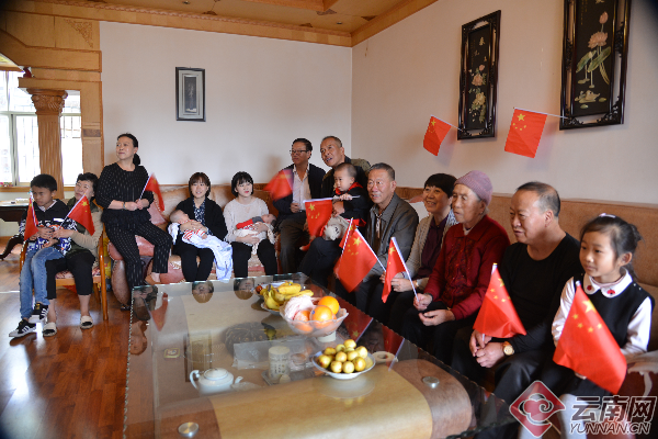 上午10時(shí),在瀘西縣中樞鎮(zhèn)鐘秀社區(qū),焦瓊仙一家圍坐在電視機(jī)前收看慶祝大會(huì),他們家是一個(gè)有27口人的四世同堂的家庭。在和諧喜慶、其樂融融的氛圍中,焦瓊仙一家向祖國(guó)深情告白:“祖國(guó)萬歲!我愛你中國(guó)!”