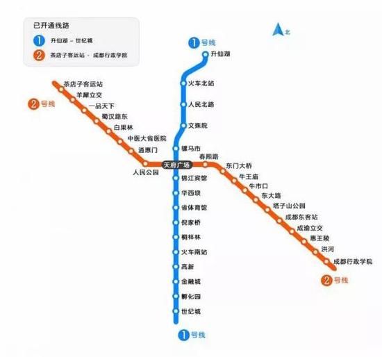 成都地鐵1號(hào)線一二期、2號(hào)線一二期開(kāi)通