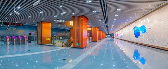 △以“花重錦官城”為主題的皇花園站,是5號(hào)線“芙蓉錦繪”的代表之一