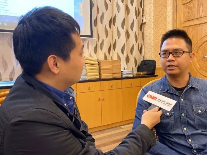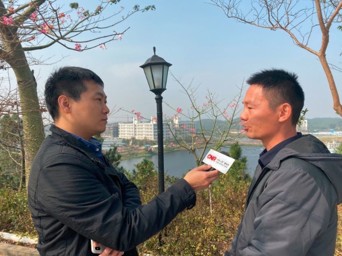 記者何偉奇采訪鶴山市農(nóng)業(yè)農(nóng)村局負責人鐘振超(右)