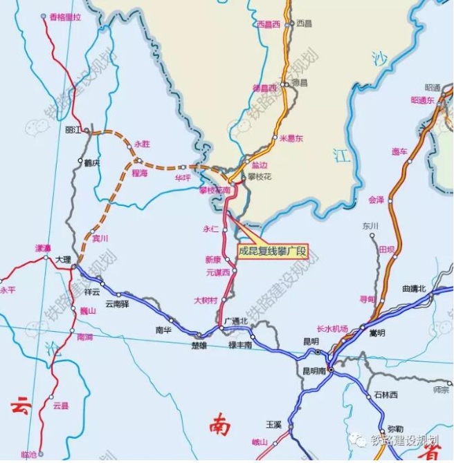 成昆復(fù)線攀枝花至廣通段線路走向示意圖