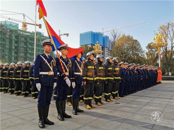 來自省直有關(guān)部門及全省消防救援隊伍指戰(zhàn)員代表200余人參加儀式。