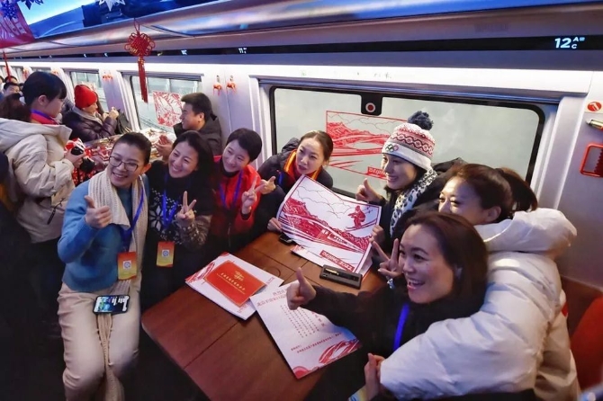 △冬奧會冠軍們乘坐京張高鐵首發(fā)列車