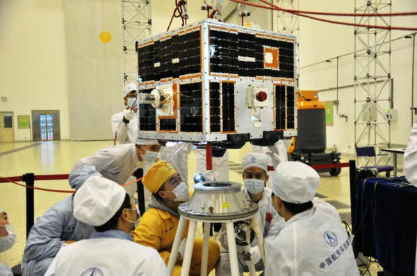 “天琴一號”技術試驗衛(wèi)星研制現(xiàn)場。中國航天科技集團五院供圖
