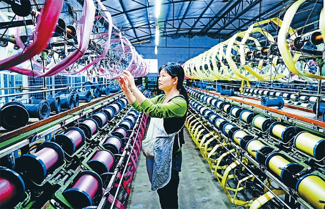 ?民營(yíng)企業(yè)是吸納就業(yè)的重要渠道。重慶市梁平區(qū)把發(fā)展民營(yíng)企業(yè)作為促進(jìn)區(qū)域經(jīng)濟(jì)發(fā)展、提升就業(yè)水平的重要抓手。目前梁平工業(yè)園區(qū)共有民營(yíng)企業(yè)270戶,吸納失業(yè)人員、被征地農(nóng)民等2萬(wàn)余人就地就近就業(yè)。圖為重慶宏美達(dá)欣興實(shí)業(yè)(集團(tuán))有限公司梁平分公司的紡織工人在崗位上忙碌。 中國(guó)勞動(dòng)保障報(bào)供圖 劉輝/攝