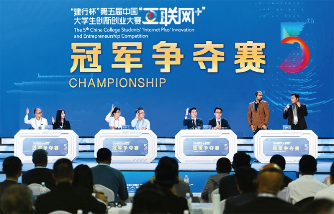 ?“雙創(chuàng)”已成為時(shí)代熱潮,創(chuàng)業(yè)帶動(dòng)就業(yè)的倍增效應(yīng)不斷顯現(xiàn)。2019年10月14日,第五屆中國(guó)“互聯(lián)網(wǎng)+”大學(xué)生創(chuàng)新創(chuàng)業(yè)大賽冠軍爭(zhēng)奪賽在浙江杭州舉行,來(lái)自清華大學(xué)、浙江大學(xué)等高校的創(chuàng)業(yè)者攜創(chuàng)新創(chuàng)業(yè)項(xiàng)目展開(kāi)路演角逐。圖為多名創(chuàng)業(yè)者在互動(dòng)提問(wèn)。 中新社記者 王剛/攝