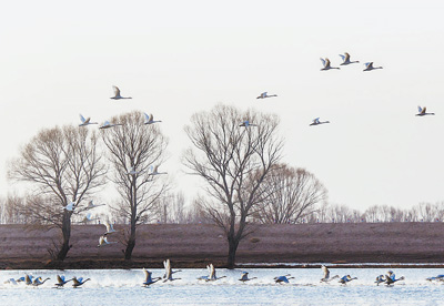 通過(guò)封育禁牧,退田還灘,以及在沙漠與濕地的邊緣種植紅柳、沙柳、花棒等植被,進(jìn)行生物治沙,防止沙漠進(jìn)一步擴(kuò)大,基本遏制了沙地對(duì)濕地的侵害。而后進(jìn)行合理的濕地建設(shè),比如建立濕地管理站,修建保護(hù)圍欄、管護(hù)碼頭、瞭望塔、鳥(niǎo)類(lèi)觀測(cè)亭等設(shè)施,黃沙古渡生態(tài)建設(shè)公司每年約聘用上百名周邊村鎮(zhèn)的農(nóng)民來(lái)參與經(jīng)營(yíng),他們的家庭收入來(lái)源也由種養(yǎng)殖向服務(wù)業(yè)變化?!爸挥袧竦氐纳鷳B(tài)良性發(fā)展,我們的企業(yè)才能持續(xù)運(yùn)營(yíng)下去?!痹摴ぷ魅藛T說(shuō)。