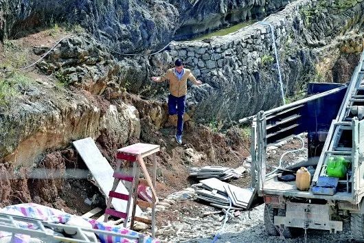 韋德王和同事們,每天面對(duì)的都是困難和問題:剛來到八好村的時(shí)候,大部分屯沒有通路,最遠(yuǎn)的弄哈屯往返需要走6、7個(gè)小時(shí)的山路。韋德王經(jīng)常是天沒亮出門,回到辦公室已是深夜;山里極度缺水,修路、建房、做水柜,都需要從20多公里外的鄉(xiāng)政府所在地運(yùn)水和水泥,生產(chǎn)建設(shè)成本極高,效率低,進(jìn)度慢。貧困戶建設(shè)一個(gè)水柜,需要運(yùn)兩三車水,水費(fèi)就花費(fèi)2000元左右,而一個(gè)水柜的建設(shè)成本預(yù)算為18000元。惡劣的自然條件嚴(yán)重制約了八好村脫貧攻堅(jiān)的進(jìn)程,韋德王幾乎每天都是在反復(fù)推進(jìn)公路、危舊房、水柜等基礎(chǔ)設(shè)施建設(shè)以及脫貧產(chǎn)業(yè)項(xiàng)目的工作。