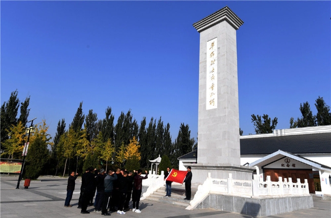 2019年10月30日,河北省固安縣馬莊鎮(zhèn)黨員在林子里烈士陵園重溫入黨誓詞。新華社記者 王曉 攝