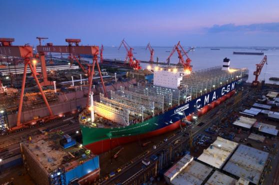 2020年2月底,由中國船舶建造的23000箱集裝箱船將交付船東。該船是全球首艘液化天然氣(LNG)動力的超大型集裝箱船,總長400米、型寬61.3米、服務(wù)航速21.55節(jié)、載重量近22萬噸,載箱量達(dá)23000箱、可運(yùn)載2200個(gè)40英尺冷藏集裝箱,能滿足全球最嚴(yán)格排放要求,與同型燃油集裝箱船相比,單航次二氧化碳排放量減少約20%,氮氧化物排放量減少近85%,顆粒物、硫氧化物排放量減少99%。