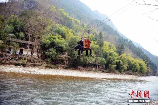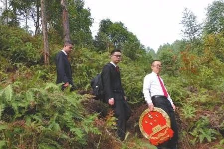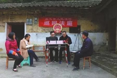 圖片來(lái)源:華西都市報(bào)2018年11月,四川內(nèi)江市威遠(yuǎn)觀英灘鎮(zhèn)北坪村大山里的一村民起訴離婚。威遠(yuǎn)縣人民法院連界法庭庭長(zhǎng)尹華榮入村了解情況,在得知當(dāng)事人行動(dòng)不便且身體不適后,尹華榮決定和同事一起將巡回法庭帶到北坪村的當(dāng)事人家門(mén)口。過(guò)索橋,躲落石