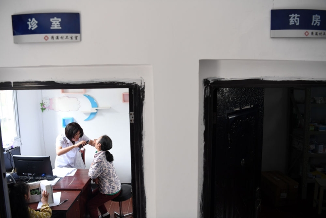張清語的媽媽徐曉嬋在清溪村衛(wèi)生室內(nèi)為村民看病。