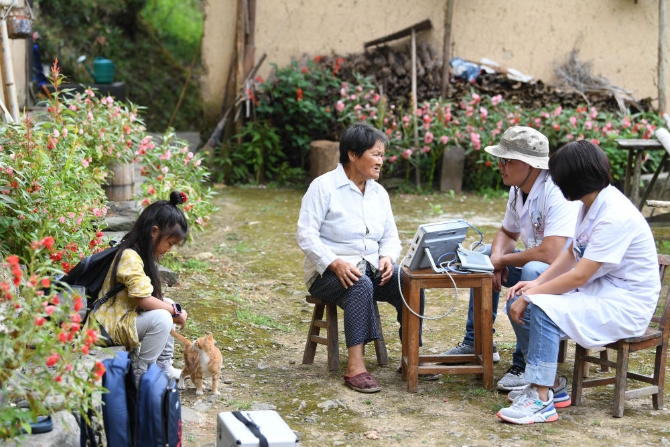 張清語和爸媽一起來到清溪村為村民開展醫(yī)療服務(wù)。