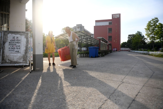 7月31日清晨六點(diǎn)多,葉連平來到卜陳學(xué)校暑期補(bǔ)習(xí)教室收拾講臺(tái)。