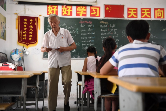 2019年,92歲的退休教師葉連平冒著高溫經(jīng)營著他的暑期英語補(bǔ)習(xí)班。葉連平說,他是一只和時(shí)間賽跑的“螢火蟲”。