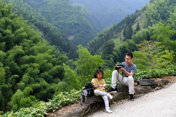 8月31日,劉軍喜在安徽省休寧縣璜尖鄉(xiāng)清溪村拍攝7歲女孩張清語和父母的駐村故事。
