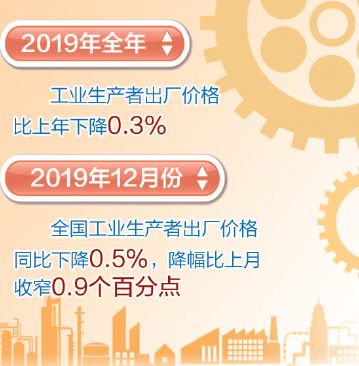 從2019年全年看,CPI同比上漲2.9%,順利完成2019年年初確定的“全年居民消費(fèi)價(jià)格漲幅3%左右”的預(yù)期調(diào)控目標(biāo);PPI同比由2018年上漲3.5%轉(zhuǎn)為下跌0.3%。