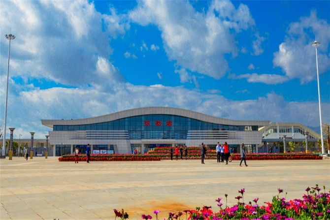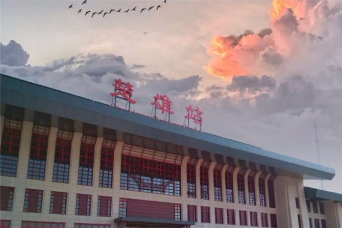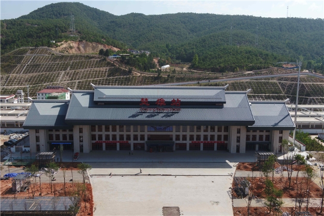 楚雄站,原名楚雄北站,為楚雄市高鐵站,于2018年7月1日隨著昆楚鐵路開通正式投入使用。楚雄站的開通也標志著楚雄正式跨入高鐵時代,與昆明、大理形成一小時交通生活圈。楚雄站位于楚雄市東瓜鎮(zhèn)車坪社區(qū),占地約1萬平方米,為“三站臺七線”,能同時容納5000人聚集乘車。站房建筑風(fēng)格濃縮了楚雄彝族地方特色,屋面覆蓋著清灰瓦,站房色調(diào)以紅色為主色。