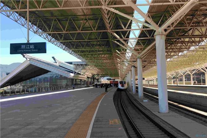 麗江站站房面積11821平方米,建筑高度32.50米,長182米,寬50.3米,兩個候車室共設(shè)1200個座椅,乘客可由一樓候車室進站通道進入二、三站臺,或由二樓候車室天橋直接進入一站臺。