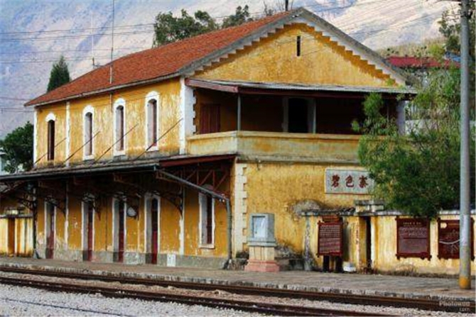 碧色寨火車站位于紅河哈尼族彝族自治州蒙自市草壩鎮(zhèn)碧色寨村。1910年,滇越鐵路全線竣工,線路自越南海防,經(jīng)老街跨越紅河進入中國河口,經(jīng)碧色寨、開遠到昆明,成為中國西南地區(qū)第一條鐵路,也是中國第一條國際出海大道。由于幾乎所有的個舊大錫等出口物資都在碧色寨車站裝車出境,使最初只有十幾戶人家的碧色寨,成為鐵路線上的一個特等站,并迅速成為一個異常繁忙的中轉(zhuǎn)站及貿(mào)易集市,成為云南進出口貿(mào)易的重要集散地。