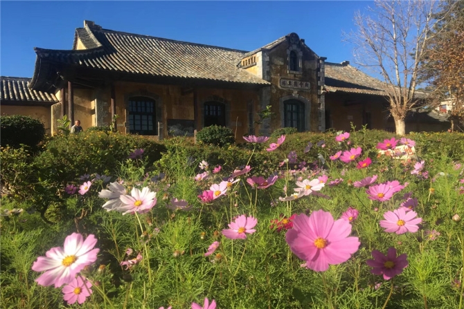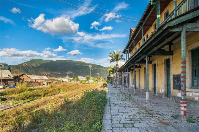 走進位于紅河哈尼族彝族自治州建水古城的小火車臨安站,黃墻紅瓦的法式車站建筑,在藍天白云的映襯下熠熠生輝。它建于1928年,位于米軌鐵路蒙寶線上,融合了上世紀二十年代中、法建筑風(fēng)格。