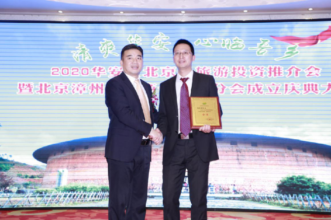 ?1月11日,2020年華安(北京)旅游投資推介會(huì)在京舉辦。圖左為華安縣縣長(zhǎng)簡(jiǎn)洪坤。