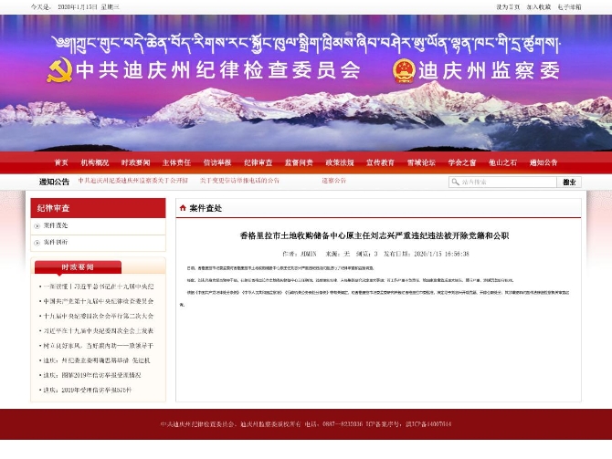 昆明信息港訊 機(jī)器人小明 日前,香格里拉市紀(jì)委監(jiān)委對香格里拉市土地收購儲備中心原主任劉志興嚴(yán)重違紀(jì)違法問題進(jìn)行了紀(jì)律審查和監(jiān)察調(diào)查。