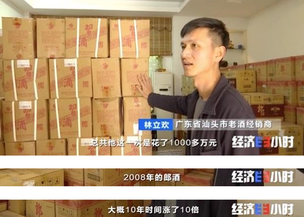 廣東省潮州市老酒貿(mào)易商羅逸丹:當(dāng)?shù)噩F(xiàn)在有一句話:存銀行不如存酒。每年大概可以帶來(lái)幾百個(gè)投資者,就算是100人,1個(gè)人投資1000萬(wàn)元,那就至少是10個(gè)億。