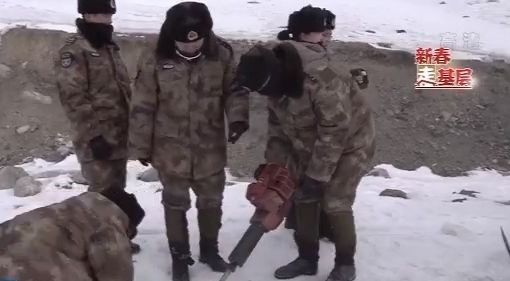 西部戰(zhàn)區(qū)氣象水文隊副隊長 蔣印祺:你們倒(車)的時候注意啊,就拿把鍬拿把鎬就對了,陷得有點深。