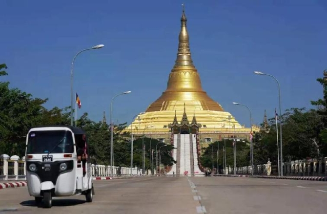 這是內(nèi)比都大金塔,為當(dāng)?shù)氐貥?biāo)建筑物。緬甸是著名佛教國家,佛塔眾多,有“佛塔之國”的美譽(yù)。新華社記者王申攝