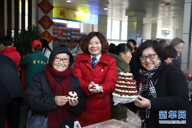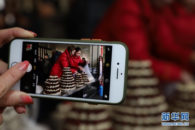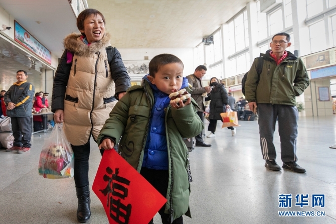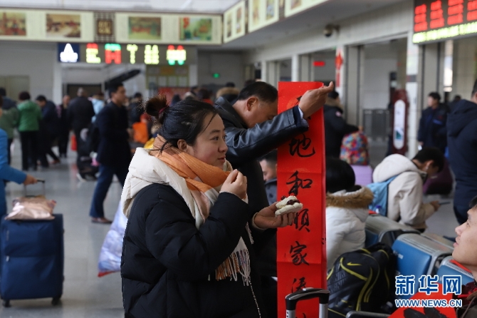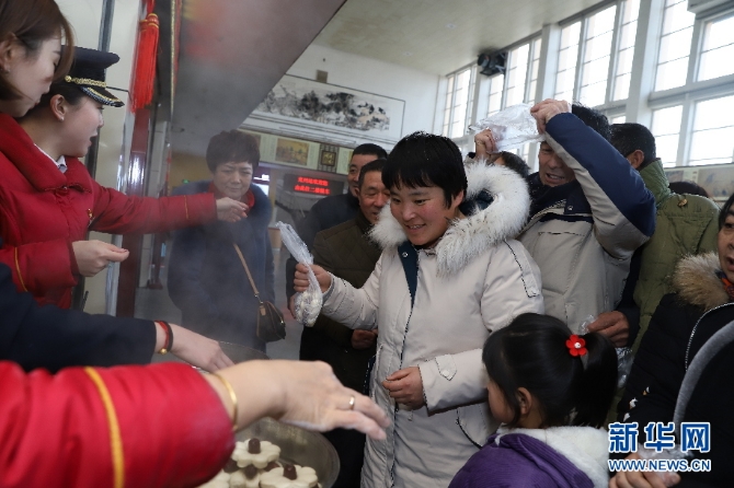 候車旅客邊吃棗糕邊感受中國的傳統(tǒng)習(xí)俗