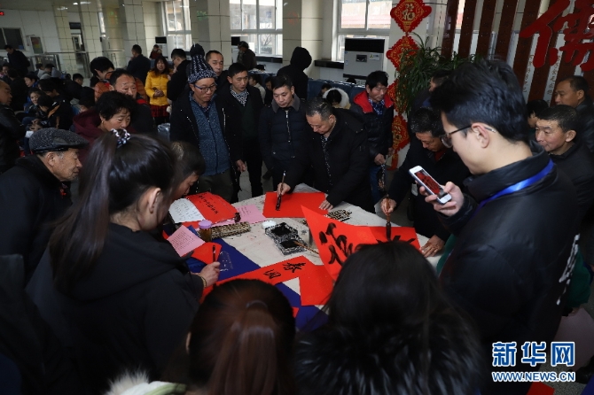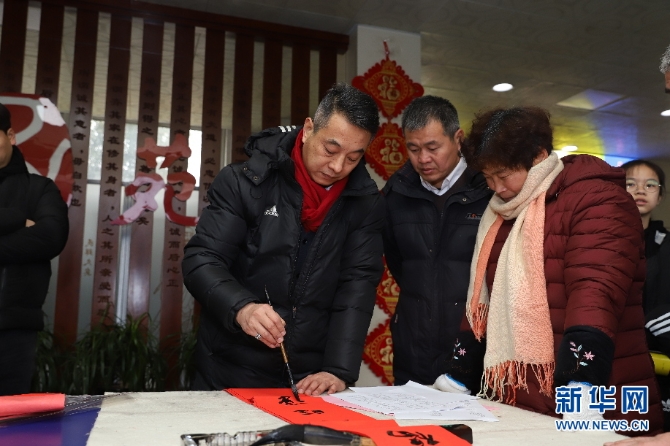 志愿者把愿望寫在春聯(lián)里