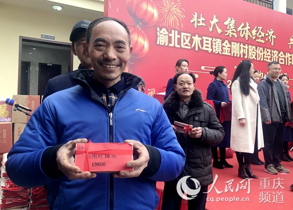 張國(guó)明代表金剛村16社領(lǐng)取了股東分紅。胡虹/攝